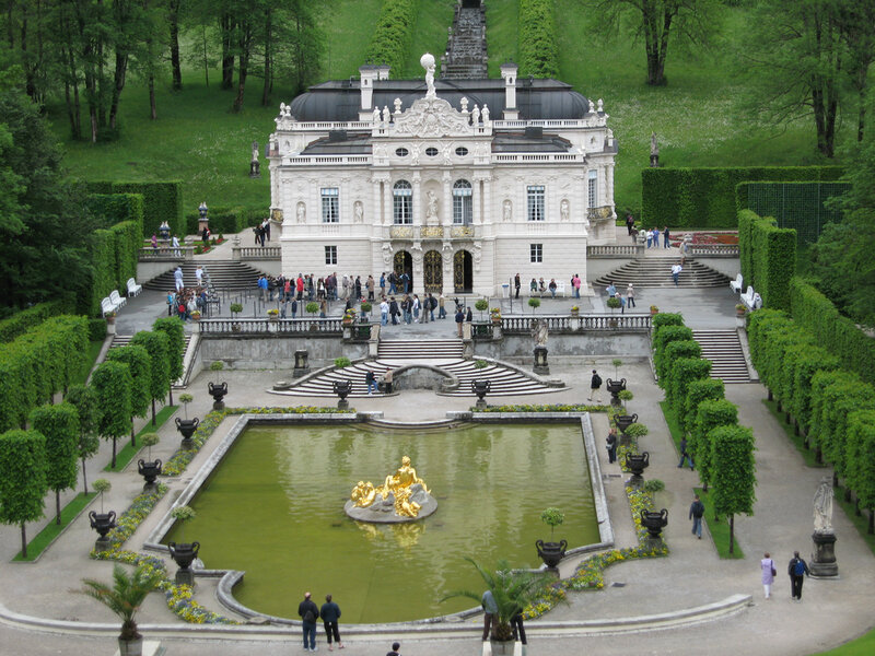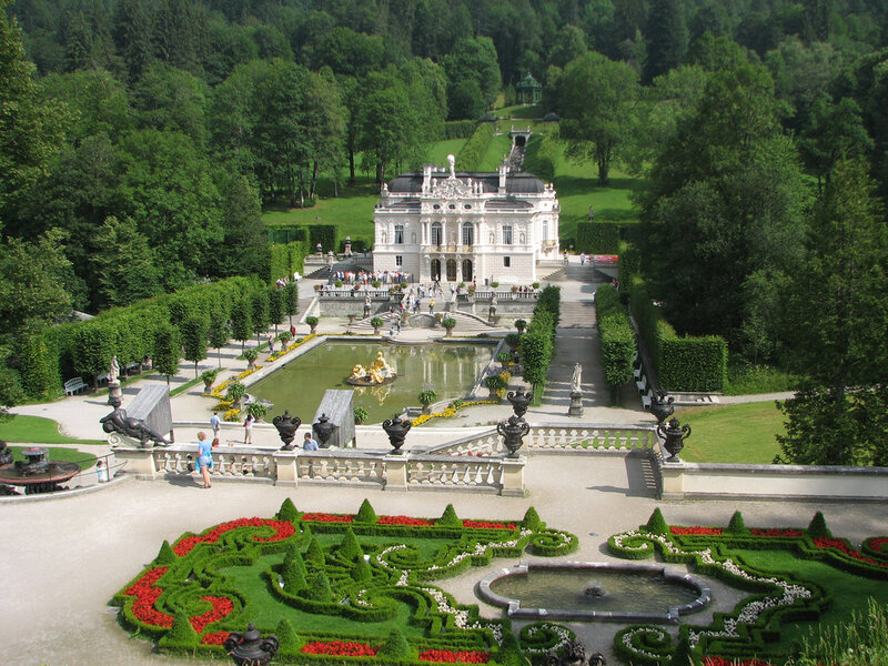 Замок Линдерхоф был построен по указанию короля Людвига II. Первоначальные замыслы родились у короля после посещения Версаля в 1867 г. Уже в 1869г. он