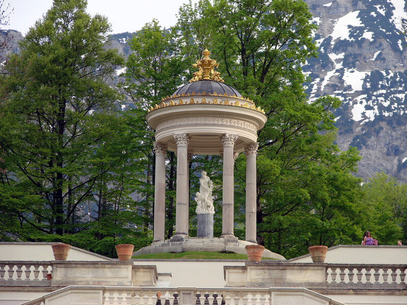 Здесь по-прежнему растет 300-летняя липа, давшая название поместью (Linderhof в переводе означает "Липовый двор").